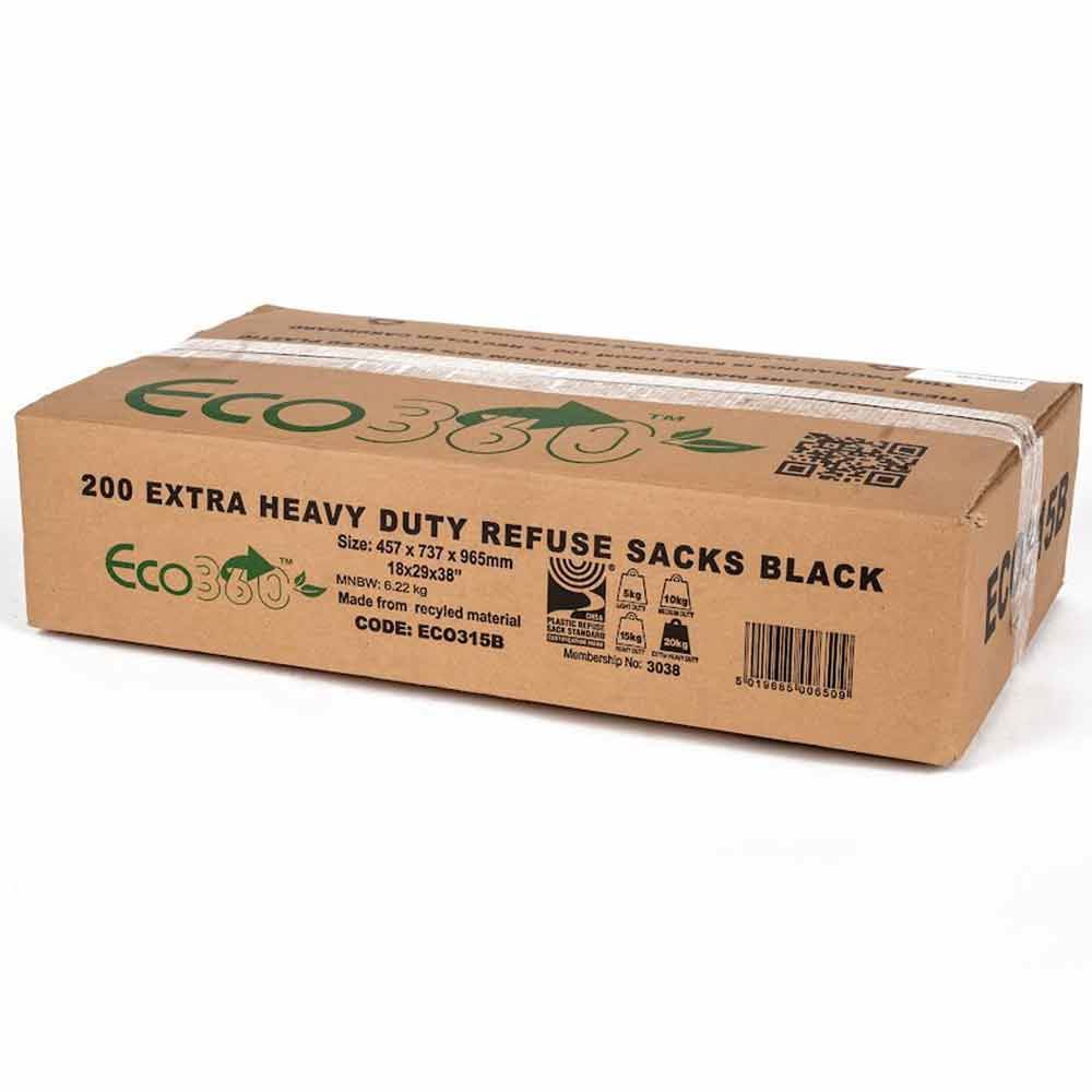 - Heavy Duty black refuse sacks. Made from a minimum 98% recycled material.