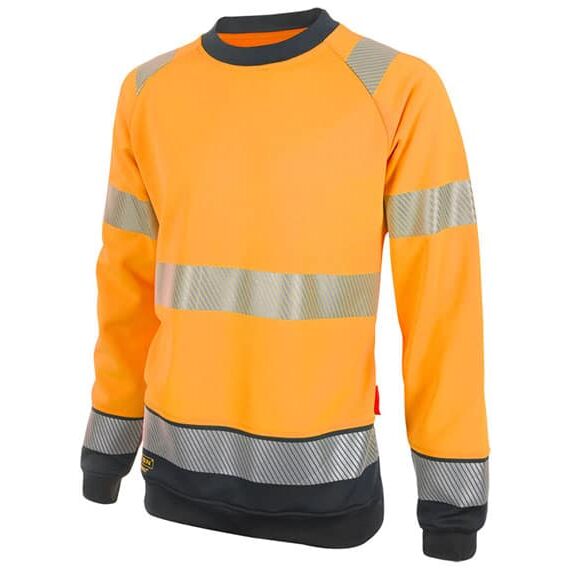 B-Seen Two Tone Hi Vis Sweatshirt in Orange and Black, made from a high quality 280gsm fleece fabric to keep you warm on site. Detailed with hi-viz retro-reflective sew on tape. Stay safe on-site with our range of hi vis sweatshirts.