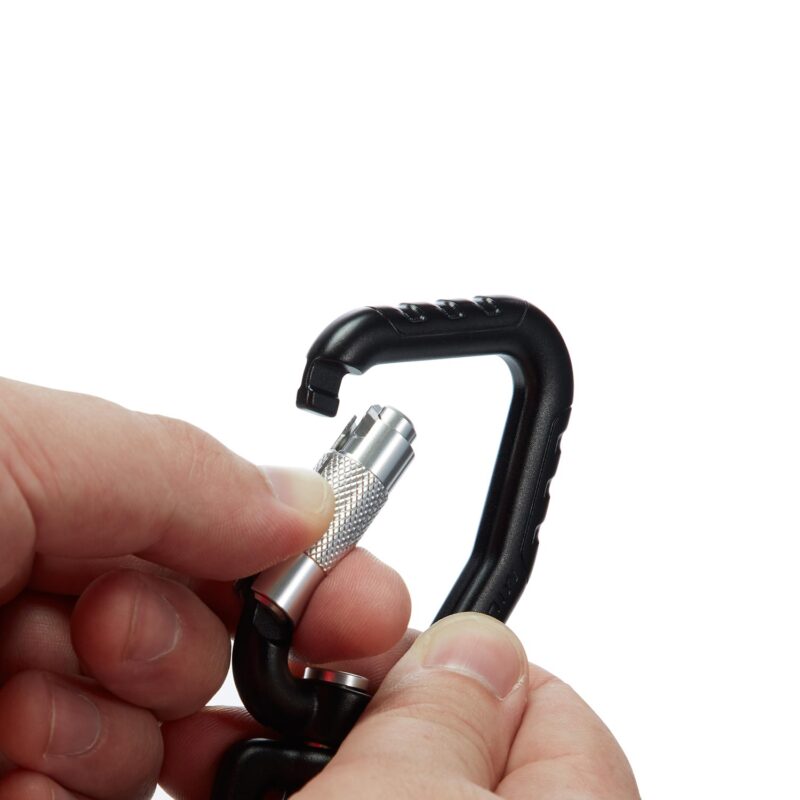 • Double locking carabiner – ensures a secure connection that cannot become loose or slip off accidently