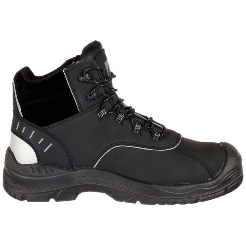 Innovative style with trend led design that provides maximum protection. Lightweight, flexible and highly breathable gives added comfort. TPU ankle chassis with extra padding for maximum ankle support. 100% non-metallic featuring a fiberglass toecap and composite midsole with the added benefit of water resistance S3 protection. Contrast design lines ensures visibility throughout the day.