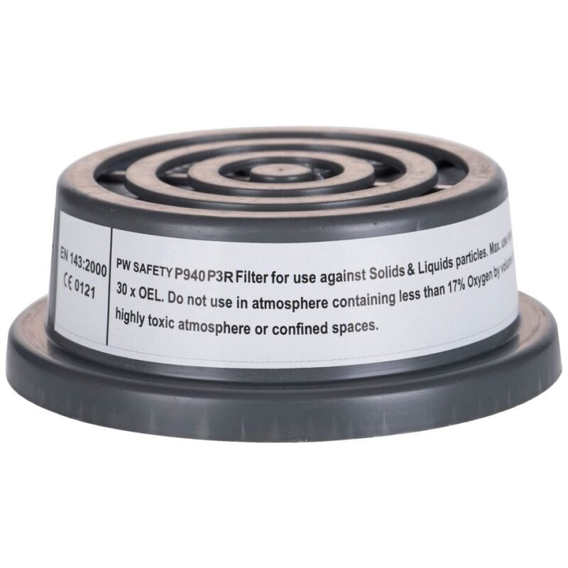 The filter P940 is a particle filter that protects against dusts. It is equipped with a special thread for pair use only and it can be used only on the P410 Half Mask. This filter is a P3 R type and protects against toxic substances such as particles and microorganisms.