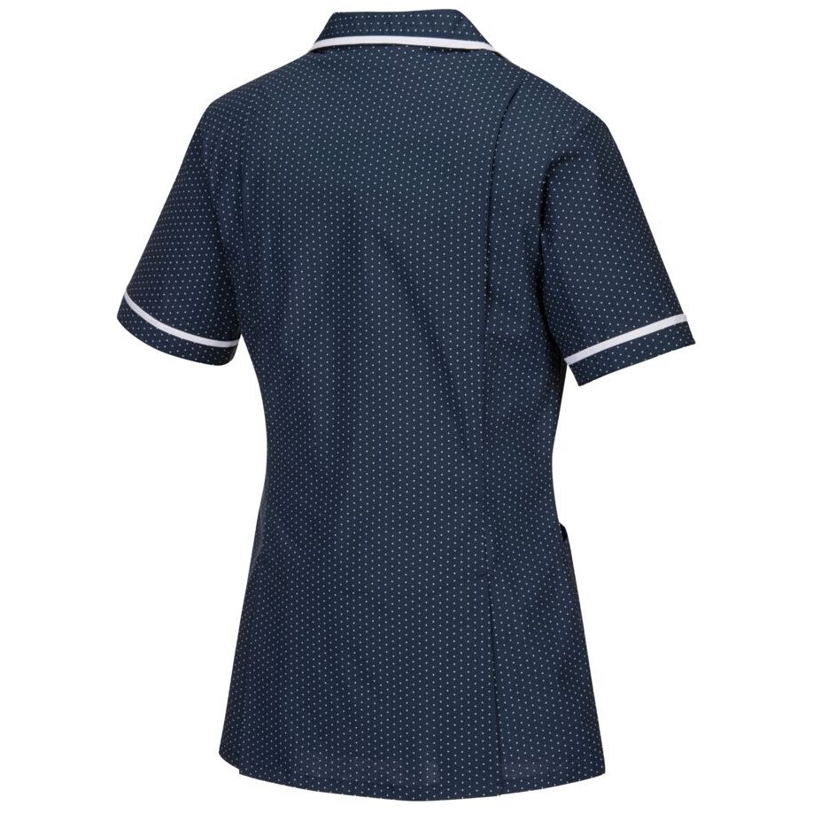 This tunic is made from our Kingsmill stretch twill fabric designed to move with your body during your every day work. This style is a classic all over polka dot design that offers a flattering classic look.