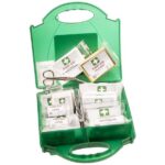 This first aid kit is designed for medium risk workplaces such as offices, warehouses or factories. Contained in a handy robust green box with carrying handle and wall bracket, the dressings are all individually wrapped and sterile.