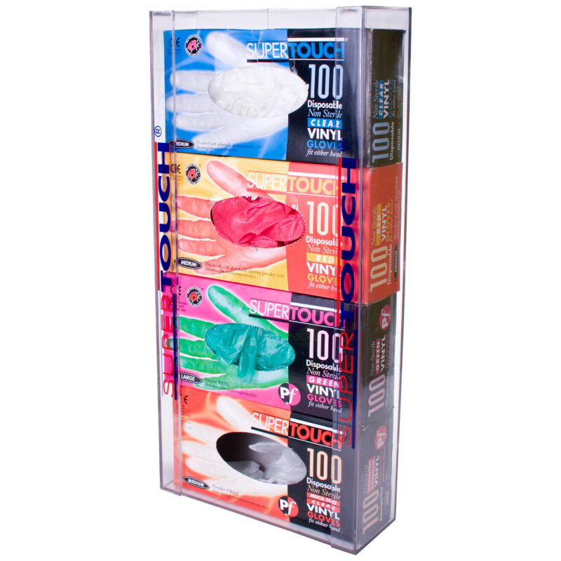 Our wall mounted Glove Dispensers are suitable for all Supertouch glove boxes, offering a compact and hygienic way to store and dispense your disposable gloves.